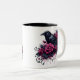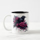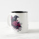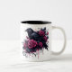 This ceramic coffee mug is shown in a Halloween raven art print.
