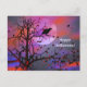 Postcard with my computer artwork of a raven sitting in a spooky tree with the full moon rising on Halloween night. Text says "Happy Halloween!"