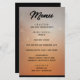 A simple yet elegant subtle orange, grey & black menu perfect for a Halloween wedding or event...matches the Halloween ravens wedding invitation.