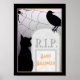 A graphic design of RIP tombstone design with the text 'Happy Halloween" on a poster.