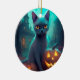 Halloween Russian Blue Cat With Pumpkins Scary Ceramic Ornament