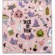 Halloween seamless pattern with different cute cartoon objects: pumpkin, cat, bat, skull, snake, potions on pastel pink background with trick or treat text. halloween seamless pattern