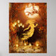 Ghostly spirit hovers over seance candles under an autumn full moon 18x24 poster