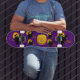 Order this great Halloween type of skateboard and skateboard around your neighbourhood trick or treating. This skateboard is customizable, so you can change and choose the size and type of skateboard you need and want. Whether you want mini, old skool, very large, or medium sized, and more you have your choice by using the customize it tool. This skateboard has images of witches flying through the night sky and a Jack 'O Lantern in the middle. He looks sort of like the moon too. The background is purple. Besides a fun Holloween design these skateboards are the greatest! They are made with 7 levels of American made maple unlike the typical skateboards that are only made with three. This one will not fall apart on you nor wear out easy if at all. Besides this, it is completely American made, with choice wood in California! There are certain things that are best made in America such as American made Fender Strats and airplane parts mostly, which also probably includes skateboards as well! Order just the deck alone so you can customize it with your own wheels or order the completes that come with the wheels and truck. Happy Holloween!