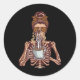 Halloween Skeleton Enjoying Coffee Messy Bun Horro Classic Round Sticker