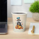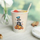 Halloween Skeleton Paper cup. Colourful Halloween paper cup with grinning paper cup. Skeleton is wearing a top hat and sitting on pumpkins.