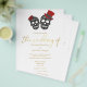 elegant luxury halloween skeletons gold handwriting minimalist modern wedding invitation