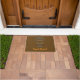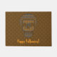 This orange and black mandala, featuring layers of skulls, lightning bolts, flying bats, spider web, spike, and sharp geometric designs, has been masked under a skull for a fun and creepy image, perfect for Halloween. Customize the text on this doormat with your own preferred greeting or remove it entirely to make a unique decoration for your entryway.
