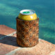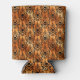 Halloween can cooler featuring spooky skull in copper brocade pattern on black background.
