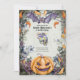 Pumpkins, skulls, gothic themed orange and purple watercolor, Halloween party / event invitation. Add text to both sides ensuring all party details, gift registry, rsvp, dress code are included. Great for wedding, birthday, quinceanera, sweet 16, baby shower.