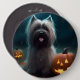 Halloween Skye Terrier With Pumpkins Scary 6 Inch Round Button