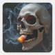 Halloween Smoking Skull Biting Candy Corn Square Sticker