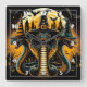 Three snakes wear witch hats against a haunting backdrop of bats, a full moon, and dark, eerie silhouettes of castles and trees, evoking Halloween spirit.