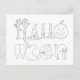Use your own coloured pencils, watercolor markers or brushes to colour these spooky and sweet symbols of the season which spell out Halloween. Features dead trees with owl, witch hat, witch stockings, pumpkin, candy corn, candy apple, moon with star and cat.
