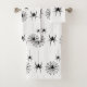Spooky, scary, black spiders, cobweb pattern black Halloween pattern towels.