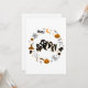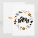 This invitation feature the words "Spooky Boo" in a unique print font with black letters orange outline with 2 ghost in the word Spooky surrounded by a collection of Halloween themed decals in this spooky theme and style. Printed on a classic, all around paper 17.5 pt thickness with an uncoated matte finish with an eggshell texture made and printed in the USA with "Trick Or Treat" printed on the back.