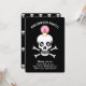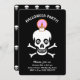 Halloween spooky skulls on black background party Invitation. All texts and numbers are ready to be personalized.