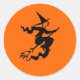 Round sticker shown with a halloween witch print. Customize this item or buy as is.