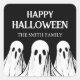Spooky sticker for a Halloween party with a black and white ghost.