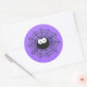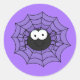 Round shape sticker shown in purple with a Halloween spider print. Customize this item or buy as is.