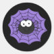 Round shape sticker shown in black with a Halloween spider print. Customize this item or buy as is.