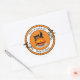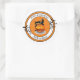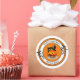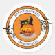 This large size round sticker is shown in a cute festive Halloween black cat and pumpkin print.