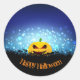 Sticker shown in a haunting Halloween pumpkin print.