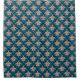 This awesome patterned shower curtain features a digital art image of a straw scarecrow with ravens sitting on its head and arms. The scarecrow is mounted on a wooden stake and is wearing an old blue shirt and brown jacket with buttons. It has a grey hat on its head and straw poking out from the arms of the jacket. The eyes are crosses and the mouth is twisted in an evil frown.