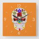 This is a beautiful orange colour square wall clock. Halloween Sugar Skull - Tattoo Art clock. It is a perfect addition to your kitchen, bathroom, bedroom, family room or business.