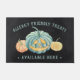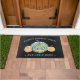 Let trick or treaters with allergies know that your home is a must-stop with this sweet doormat. Design features a smiling teal jack o lantern pumpkin flanked by smaller gourds, with "allergy friendly treats available here" in teal lettering.