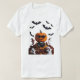 A fun and spooky T-Shirt featuring a funny pumpkin king wearing a crown, surrounded by playful ghosts and bats flying around under a crescent moon. Perfect for Halloween enthusiasts and those who love a touch of whimsy in their wardrobe.