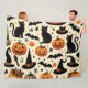 Halloween-Themed Black Cat and Pumpkin Pattern Fleece Blanket