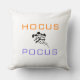 This throw pillow is shown in a festive Halloween Hocus Pocus Bats print design.