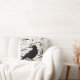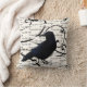 This throw pillow is shown in a black and vintage white colour with a spooky Halloween raven print design.
