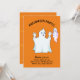 Beautiful Halloween Trumpy and Munchy ghosts Invitation. There is a pumpkin pattern on orange background on the back side. All texts and numbers are ready to be personalized.