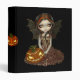 A moody Halloween painting - I've painted this winged beauty at twilight - there is a smoky dusk in the air as the unseen sun is setting. The bare trees give a taste of chill in the air. There's a big lovely Jack O'lantern too, grinning mischievously in the lap of her elaborate striped gown.. My own original acrylic painting.