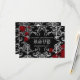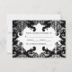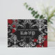 Personalized Gothic style wedding RSVP card for your Halloween or vampire theme wedding. It is black with a light to dark grey damask pattern on it and blood splatters that you can remove if desired. Add your own text on the front and the back.