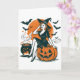 Halloween Vintage Witch on Pumpkin Bats Cauldron Card