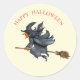 Halloween watercolour flying witch classic round sticker