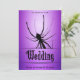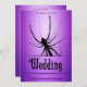 Halloween wedding invitations with large black spider and custom black text - you can change names and wedding date, printed on purple background