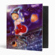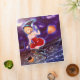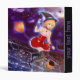A cute anime witch girl on her broomstick flying in the night and her kawaii flying kitty cats with bat wings on a binder to personalize for Halloween. Original artwork and character By me.