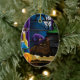 Halloween Witch Cat Purple Magic Ceramic Ornament