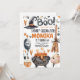 Cutest invitation to celebrate your Halloween birthady. Invite people to your party with this amazing design. Cute cat coming out of the pumpkin with halloween banner, moons and bats is such a great combination for kids birthday!