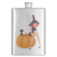 HALLOWEEN WITCH SITTING ON PUMPKIN WITH BLACK CAT.