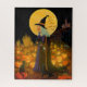 Halloween witch and Jack-O-Lantern puzzle. Titled "Midnight Gladness"..Available in several sizes. Makes a great trick or treat favour for those special Halloween fans.
