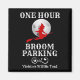 Spread a little Halloween humour with a flying witch over a full moon silhouette. One Hour Broom Parking ... Violators Will Be Toad. Great for the October season, or as a generic Halloween costume. This whimsical witch parking sign design is suitable for black and dark-coloured backgrounds.