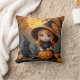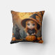 This is a pillow cushion for Halloween. It has a witch and a cat and pumpkins. Happy Holloween!