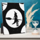 halloween, moon,personalized, scary, stars, trick treat, white black, white witch, , witch, witches fly flying