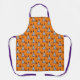 This awesome patterned apron features a digital art image of a cute grey rat witch with pink ears, nose, feet and tail. The rat is wearing a black pointed hat with a gold buckle and purple stars all over it. The rats is also wearing a black cloak also covered in purple stars. Next to the rat is a brown broom made of twigs. This rat is dressed up ready for a Halloween party.