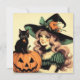 This card is more than just a piece of paper—it’s a tiny celebration of Halloween spirit, ready to be sent to someone who appreciates all things charming and slightly spooky. Whether you’re looking for Halloween cards to mail out to friends, stationery for your fall correspondence, or a cute and witchy way to say “thinking of you,” this card delivers. It’s also a perfect fit for use as a Halloween party invitation, a thank-you note after a fun night of tricks and treats, or an added touch of retro flair when tucked into a seasonal gift. The square shape adds a unique, eye-catching twist to traditional card formats, making it stand out whether it's displayed on a mantel, tucked into a book, or pinned to a corkboard with other Halloween memorabilia.